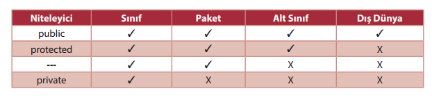 Aşağıdakilerden hangisi private niteleyicisi için doğrudur?