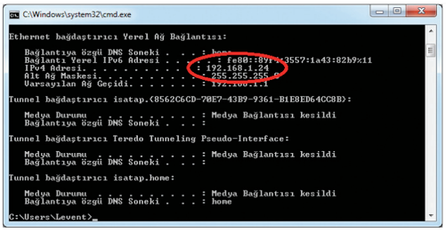 Yukarıdaki çıktıda bilgisayarın IP adresi aşağıdakilerin hangisidir?