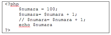 Soruda, ikinci satırda $numara değişkeni 100 sayısı olarak tanımlanmıştır. Daha sonra üçüncü satırda, bu değişken bir artırılarak 101 haline gelmiştir. Dördüncü satırda her ne kadar bu işlem tekrarlanmış gibi gözükse de, dördüncü satır // işareti ile başladığından derleyici bu satırı göz ardı eder. Bu durumlara yorum satırı denilir. Benzer şekilde derleyici, “/*” işareti ile “*/” işareti arasında kalan metnin tamamını göz ardı eder.