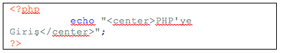Kodun ilk satırında yer alan “<?php” ifadesi, PHP derleyicisine PHP kodlarının başladığını bildirir. Bu ifadeden başlayarak son satırdaki “?>” ifadesine kadar olan her şey, PHP kodu olarak algılanıp derlenecektir.