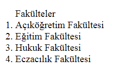Bir web sayfasında yukarıdaki liste görüntülenmektedir. Bu listeyi oluşturan HTML kodları ile ilgili verilenlerden hangisi doğrudur?