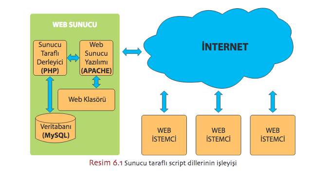 Sunucu taraflı script dillerinin işleyişi şu şekildedir;