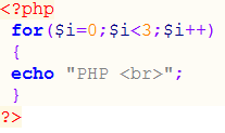 Verilen kodlarda "for" döngüsüyle oluşturulmuş olan yapıda $i değişkeni 0'dan başlayıp 3'e kadar (3 dahil değil) birer birer artacaktır. $i her arttığında ekrana PHP ifadesi yazdırılıp bir alt satıra geçilecektir. Bu durumda doğru yanıt B seçeneğidir.