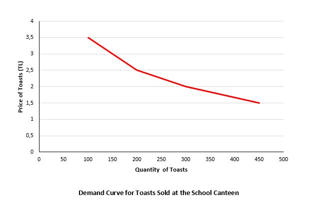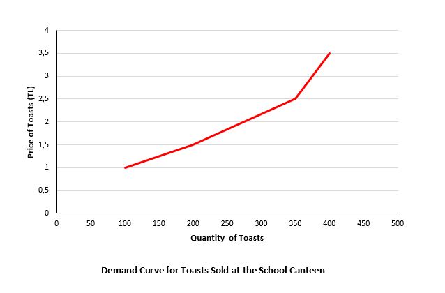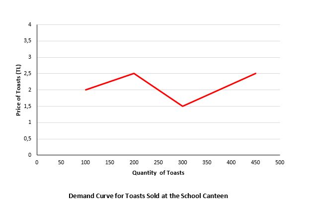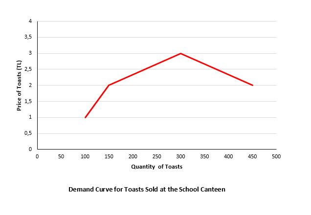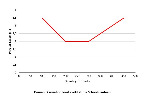 Which of the following can be the correct demand curve for the toasts sold at the school canteen according to ‘the law of demand’?