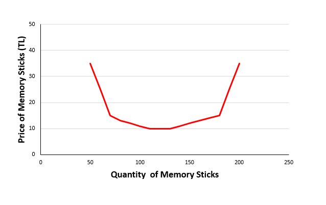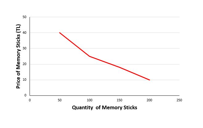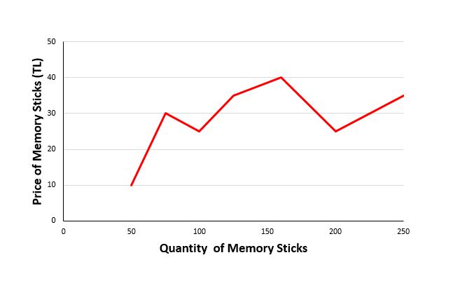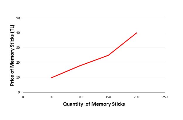 Which of the following can be the correct ‘supply curve’ for the memory sticks sold at a technology store according to ‘the law of supply’?