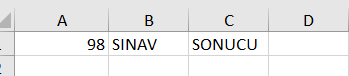 D1 hücresine konumlanarak yazılacak olan =PARÇAAL(B1;4;2) işlevinin sonucu nedir