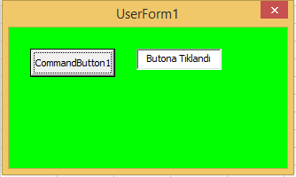 İkinci kod parçacığına göre; formda yer alan CommandButton1 nesnesinin BackColor özelliğine bir renk değeri (Yeşil) verilmektedir.
