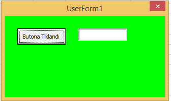 Bu durumda kod çalıştırıldığında; butonun arka planı yeşil olacak ve TextBox1 nesnesinde "Butona Tıklandı" yazısı yazacaktır.
