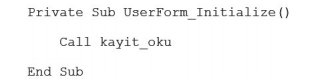 VBA ile veri tabanları uygulama örneği için kayıt okuma alt yordamı çağırma |