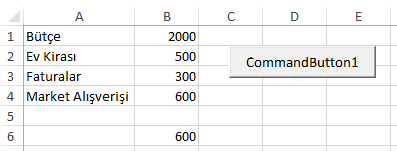 CommandButton: Simgesi ile kullanılır. Makro veya olay prosedürünü tetiklemekte kullanılır. VBA’da hazırlanmış fonksiyon ve yordamlara komut vermek için kullanılır. Varsayılan olarak Click olayı ile kullanılır.