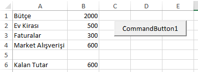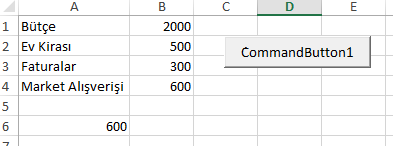 5. Son olarak; A6 hücresine butce (600) değeri yazılıyor.