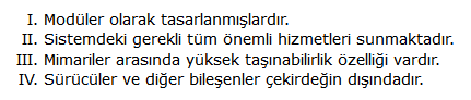Yukarıdakilerden hangileri tek parça çekirdek tabanlı işletim sisteminin özelliklerindendir?