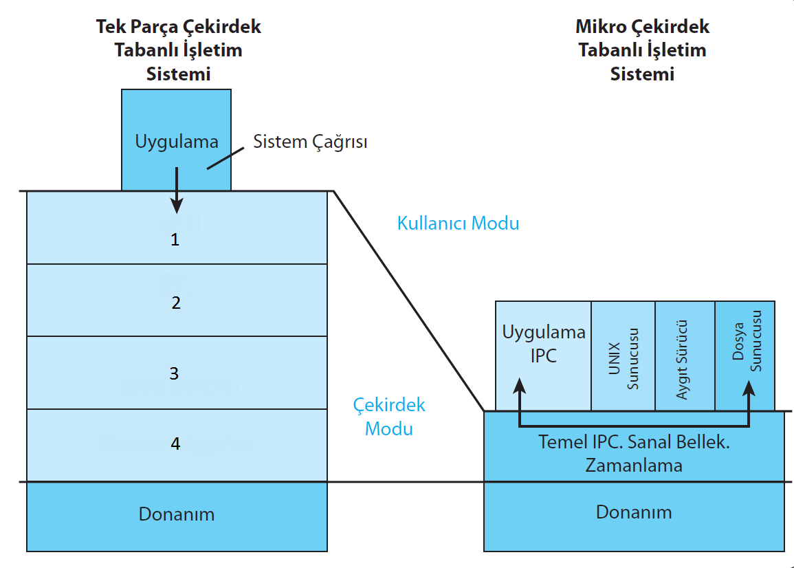 1 - VFS 2 - Zamanlayıcı, Sanal Makine 3 - IPC, Dosyalama Sistemi 4 - Donanım Aygıtları |