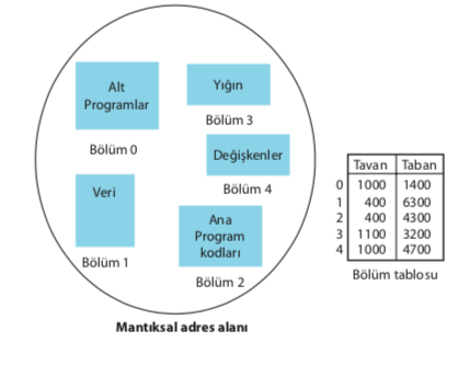 Değişkenlerin tutulduğu 4. bölümün taban kaydedici değeri 4700’dür. Yani fiziksel bellekte 4700 no’lu yerden başlamaktadır. Tavan kaydedici değeri ise 1000’dir. Yani bu bölümün uzunluğu 1000’dir ve bu bölüme bilgi yazılmak istenirse 4700 ila 5700 arasındaki adresler kullanılabilir. Bir değişkeni yazmak için 5700’den daha büyük bir adrese ulaşılmak istenirse bu durumda adresleme hatası oluşacaktır.