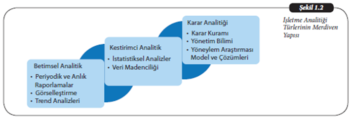 İşletme analitiği türlerinin merdiven yapısı şekilde görülmektedir.