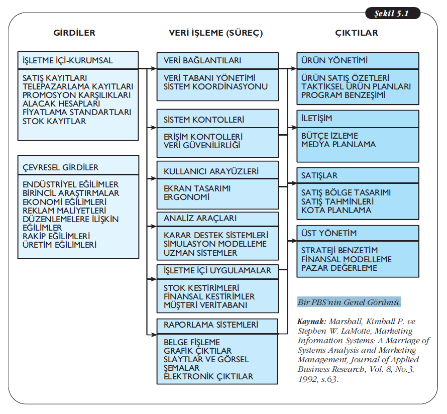 Dersimizin kitabında Sayfa 105’deki Şekil 5.1: bir PBS’in Genel Görünümü’ne göre Karar Destek Sistemleri Pazarlama Bilgi Sisteminin Veri İşleme (Süreç) öğelerinden biridir.