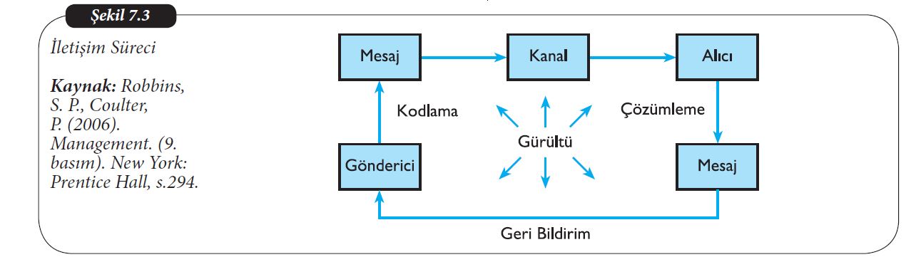 İletişimin kişiler arasında nasıl gerçekleştiğini gösteren iletişim sürecinin unsurları Şekil 7.3’te gösterilmektedir.