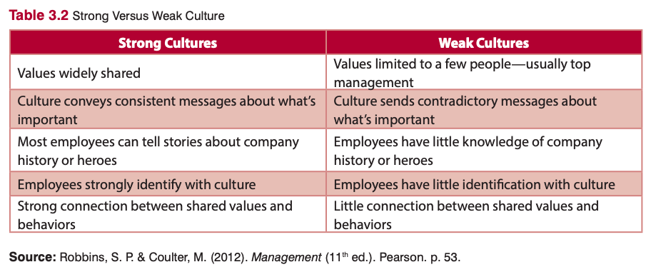Which of the following is an element of strong cultures in an organization?