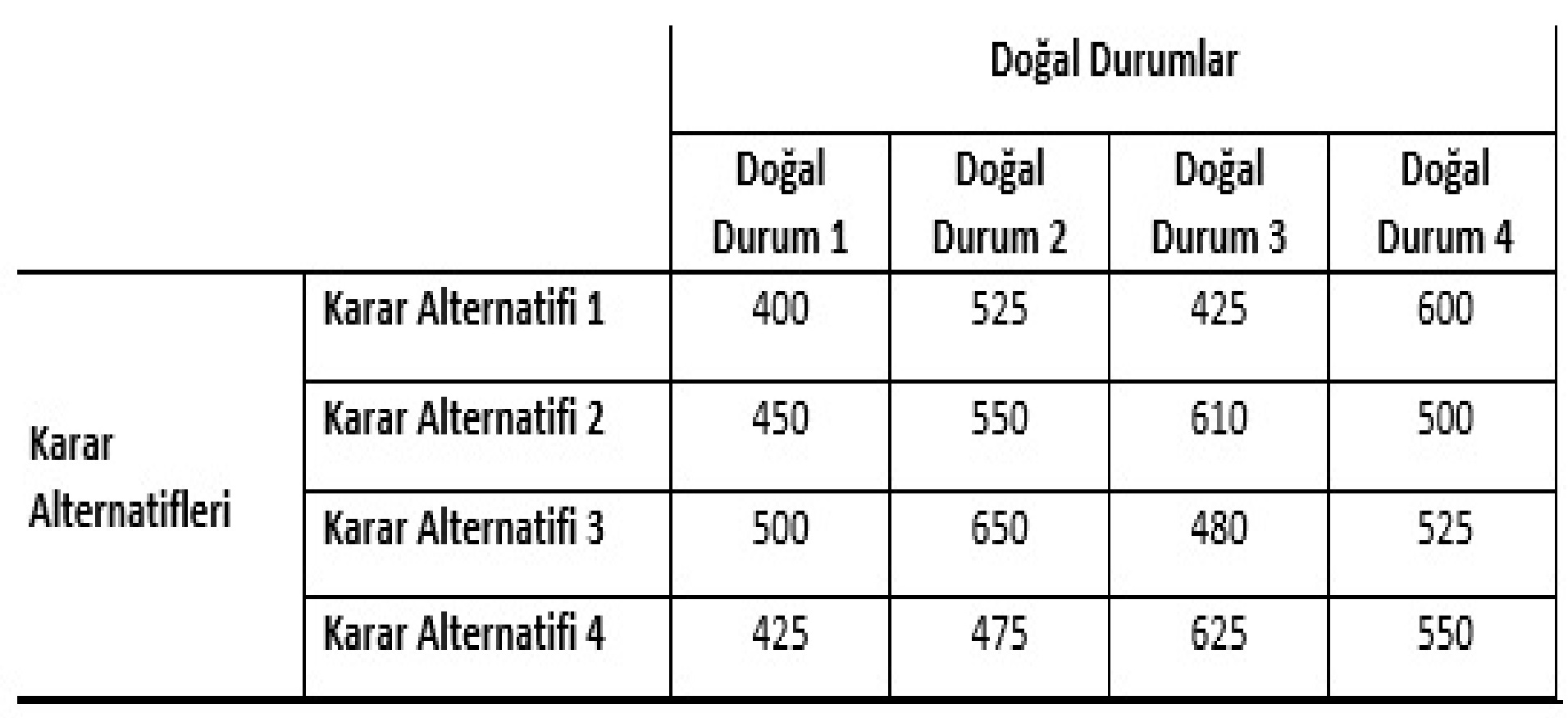 Karar Alternatifi 3 ve Karar Alternatifi 4 |
