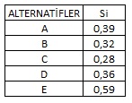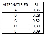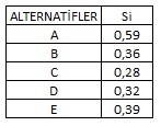 Buna göre; tüm alternatifler için ortalama grup faydası (Si) değerleri aşağıdakilerden hangisinde doğru olarak verilmiştir?