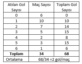 | Atılan Gol Sayısı | Maç Sayısı | Toplam Gol Sayısı |
