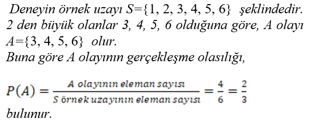 Hilesiz bir zar rastgele atıldığından üste gelen sayının 2 den büyük olma olasılığı nedir?