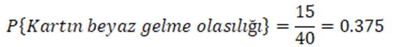 15+12+13=40 toplam kart sayısıdır. Olasılıklar eşit olduğuna göre rastgele seçilen bir kartın beyaz olma olasılığı,