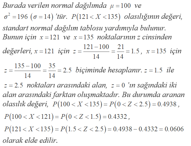 Sürekli X rassal değişkeni, 100 ortalama ve 196 varyansla normal dağılmaktadır. Bu X rassal değişkeni için olasılık değeri kaçtır?