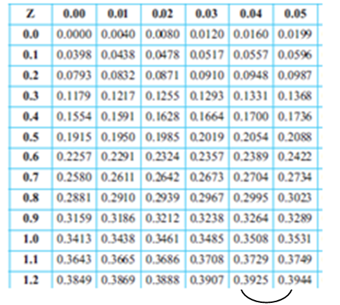 Bu nedenle, z = 0 ile z = 1,25 arasındaki alan değeri tablodan bulunur ve ortalamanın (z = 0’ın) sağındaki toplam alan değeri olan 0.5’ten çıkarılırsa, z=1,25’in sağındaki alan değeri elde edilir.