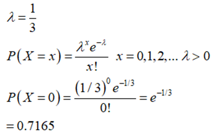 Bir hotel rezervasyon hattına gelen aramalar ?=1/3 ortalaması ile Poisson bir rassal değişkendir. Bu rezervasyon hattına 1 dakika içerisinde hiç arama gelmeme olasılığını hesaplayınız?