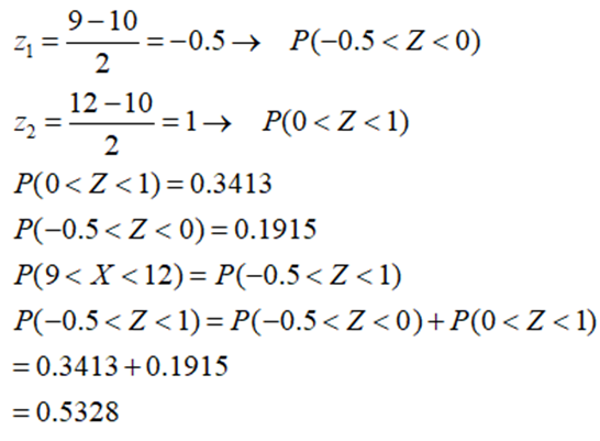 Ortalaması 10 standart sapması 2 olan bir normal dağılım veriliyor. Buna göre P( 9<X<12) olasılığı kaçtır?