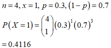 Bir mağazaya gelen tüm müşterilerin %30’ u tişört almaktadır. Buna göre bu mağazaya gelen 4 müşteriden 1’ inin tişört alma olasılığı hesaplayınız?