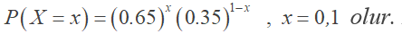 Bir Bernoulli denemesinde, başarı oranının 0.65 olduğu bilinmektedir. X rassal değişkeni başarı sayısını gösterdiğine göre, bu X rassal değişkeninin olasılık dağılımı aşağıdakilerden hangisinde doğru olarak verilmiştir?