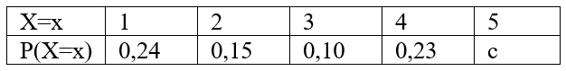 | P (X=x) | 2/15 | 3/15 | 4/15 | 5/15 |
