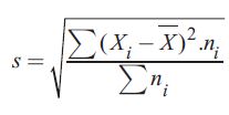 Frekans ve gruplandırılmış serilerde standart sapmanın formülü aşağıdaki gibidir: