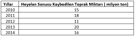 Kaybedilen toprak miktarı her yıl bir önceki yıla göre artmaktadır. |