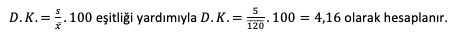 Aritmetik ortalaması 120, standart sapması 5 olan bir serinin değişim katsayısı kaçtır?