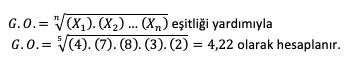 Aşağıda verilen serinin geometrik ortalamasını hesaplayınız.