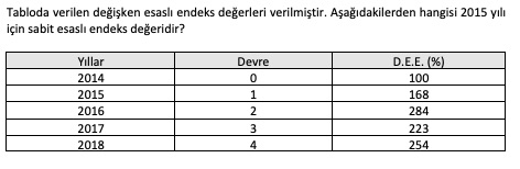 Zaman serisinin gözlem değerlerinin, belirlenen sabit bir dönem değerine (temel devre değeri) göre değişimleri önem kazandığında kullanılan endeks aşağıdakilerden hangisidir?