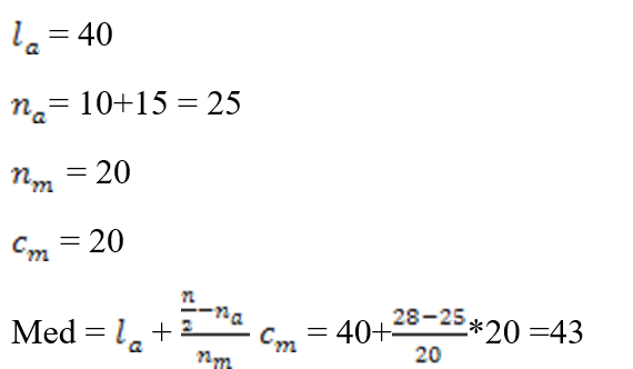 belirlenmesi gerekir. n/2 = 56/2 = 28 olduğundan 28’inci gözlem değerinin içinde bulunduğu sınıfın “medyan sınıfı” olacaktır. Bu durumda; Medyan sınıfı = 40 - 60’dır.