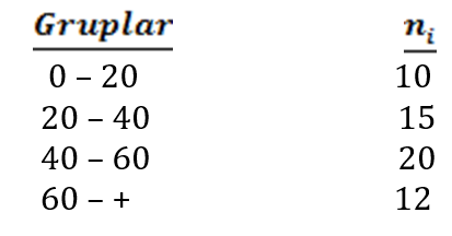 Bir gruplandırılmış seri aşağıda verilmiştir.