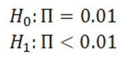 Bir fabrikada üretilen ürünlerden kusurlu olanların oranı ile ilgilenildiğinden örneklem oranını için hipotez testi yapılması gerekir. Kusurlu vidaların oranı en fazla %1 olduğundan hipotezler ya 0.01'e eşit