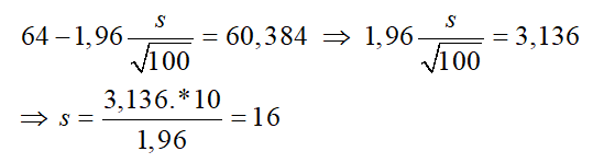 Bir okuldaki öğrenciler arasından rassal olarak seçilen 100 öğrencinin vücut ağırlıkları ortalaması 64 kg olarak elde edilmiştir ve evren vücut ağırlığı ortalaması %95 güven düzeyinde 60,864 kg ile 67,136 kg aralığında tahminlenmiştir. Buna göre rassal olarak seçilmiş 100 öğrencinin vücut ağırlığının standart sapması kaçtır?