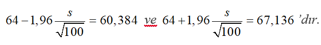 Örneklem ortalaması 64 kg’dır. Ayrıca, %95 güven düzeyinde bir aralık tahminlemesi yapıldığından