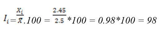 olarak bulunur. Mekan ile ilgili hesaplanacak endeks değeri için kullanılacak formül: