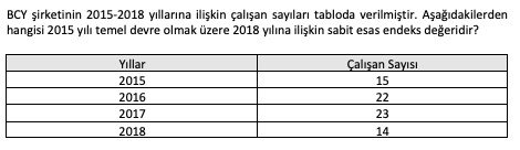Zaman serisinin endeks değeri hesaplanacak gözlem değerinin zaman serisinin belirlenen temel devre değerine bölünmesi ve 100 ile çarpılmasıyla hesaplanır.
