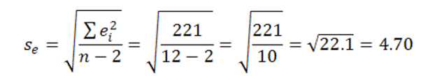 n=12 ve hata kareler toplamı 221 olan regresyon doğrusunun değişkenliği se kaçtır?