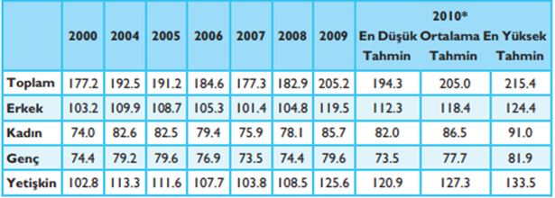 2010 yılında tahmini işsizliğin en yüksek olacağı grup gençlerdir. |