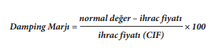 Damping marjı, normal değerin ihraç fiyatını aştığı miktarın CIF ihraç fiyatına oranıdır. Aşağıdaki şekilde formüle edilebilir.
