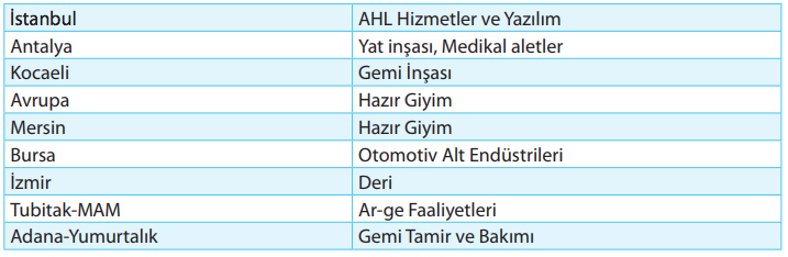 Tablodan da görülebileceği gibi İzmir serbest bölgesinin deri sektöründe yoğunlaşması seçeneği doğru bir eşleştirmedir. Doğru yanıt D'dir.
